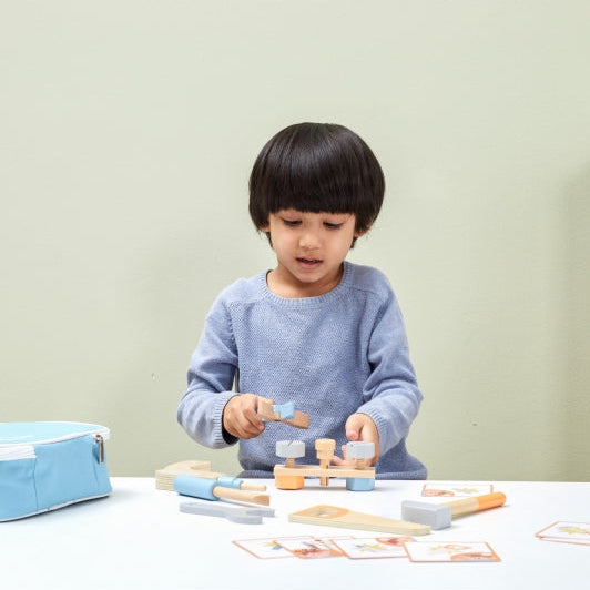 De PolarB houten gereedschapset is een geweldig cadeau-idee voor een kleine doe-het-zelver. Nu heeft elke peuter alles wat hij of zij nodig heeft voor reparaties, schroeven , spijkeren en allerlei renovatiewerkzaamheden. Het is gegarandeerd een feest. Dit product verbetert de cognitieve vaardigheden – kinderen leren over gereedschap en het gebruik ervan, ontwikkelen hun verbeelding en verbeteren hun handvaardigheid .