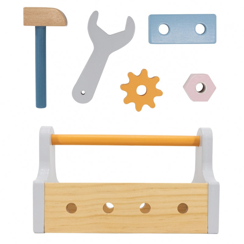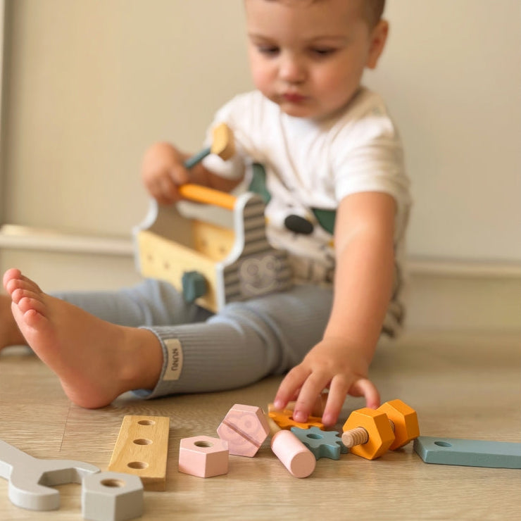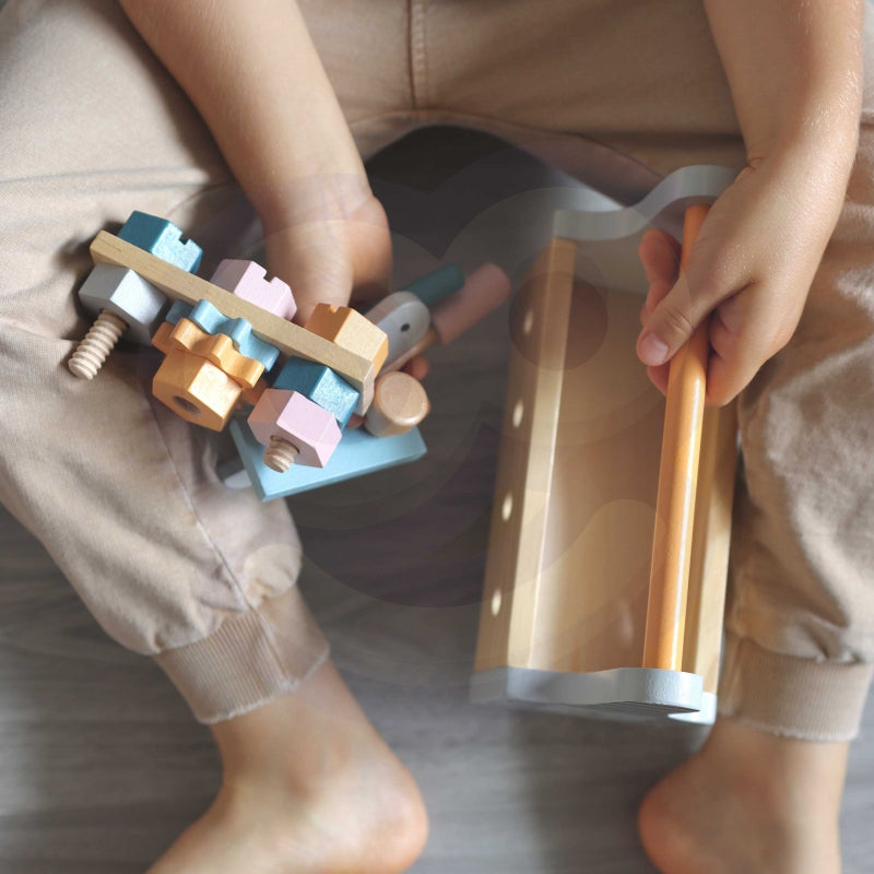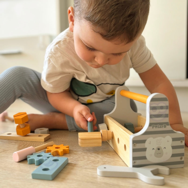 Ontdek de gereedschapsset voor kleine doe-het-zelvers van PolarB, die kinderen kennis laat maken met de wereld van creativiteit. Natuurlijke materialen en subtiele pastelkleuren met grijstinten en beukenhout maken spelen zowel leuk als aantrekkelijk. De set bevat een gereedschapskist en gereedschap – allemaal ontworpen om handvaardigheid te ontwikkelen.