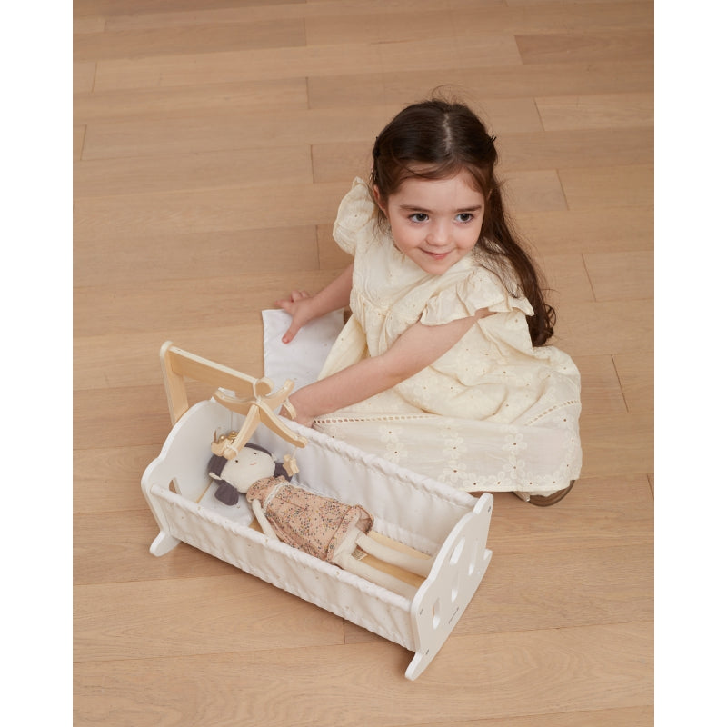 Geef je pop een vredige, knusse slaap met de prachtige PolarB wieg. De houten constructie combineert duurzaamheid met een delicate, klassieke look die perfect past bij elke kinderkamer. Een zacht katoenen kussen en een dekbed met een ster- en maanmotief voegen charme en warmte toe. Een charmante mobiel boven de wieg zorgt voor een speels en rustgevend element voor het slapengaan. Het is niet zomaar een speeltje, het is een plek waar kinderen leren over zorg, empathie en verantwoordelijkheid.